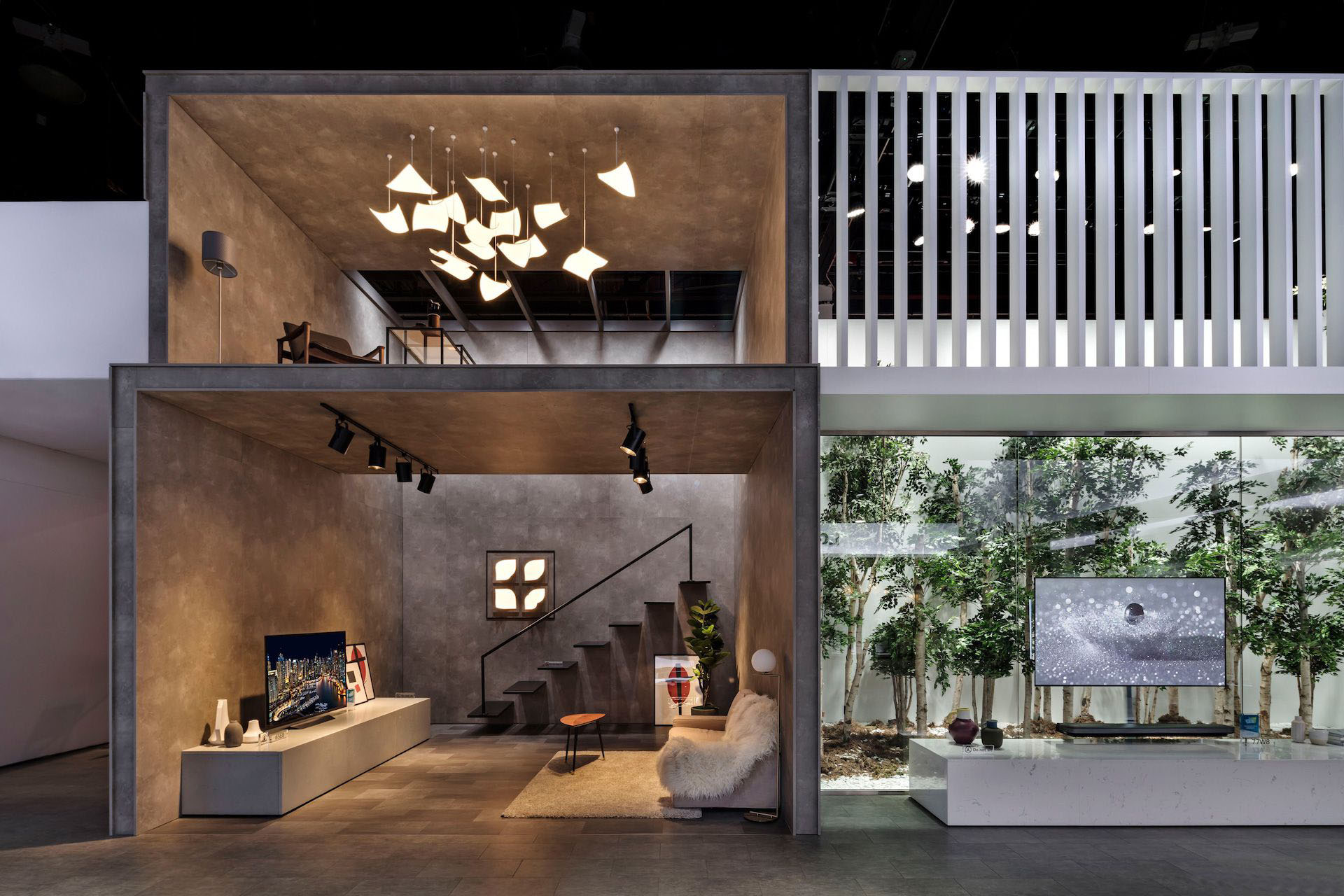 展台可以按照展品的功能区分,然后要做到小区域有小惊喜,大区域要保持统一的和谐感,不要过分突兀,以免削弱其他区域展品的关注度。搭建的设计要错落有序,主次有分,这样才不会导致喧宾夺主的设计出现。